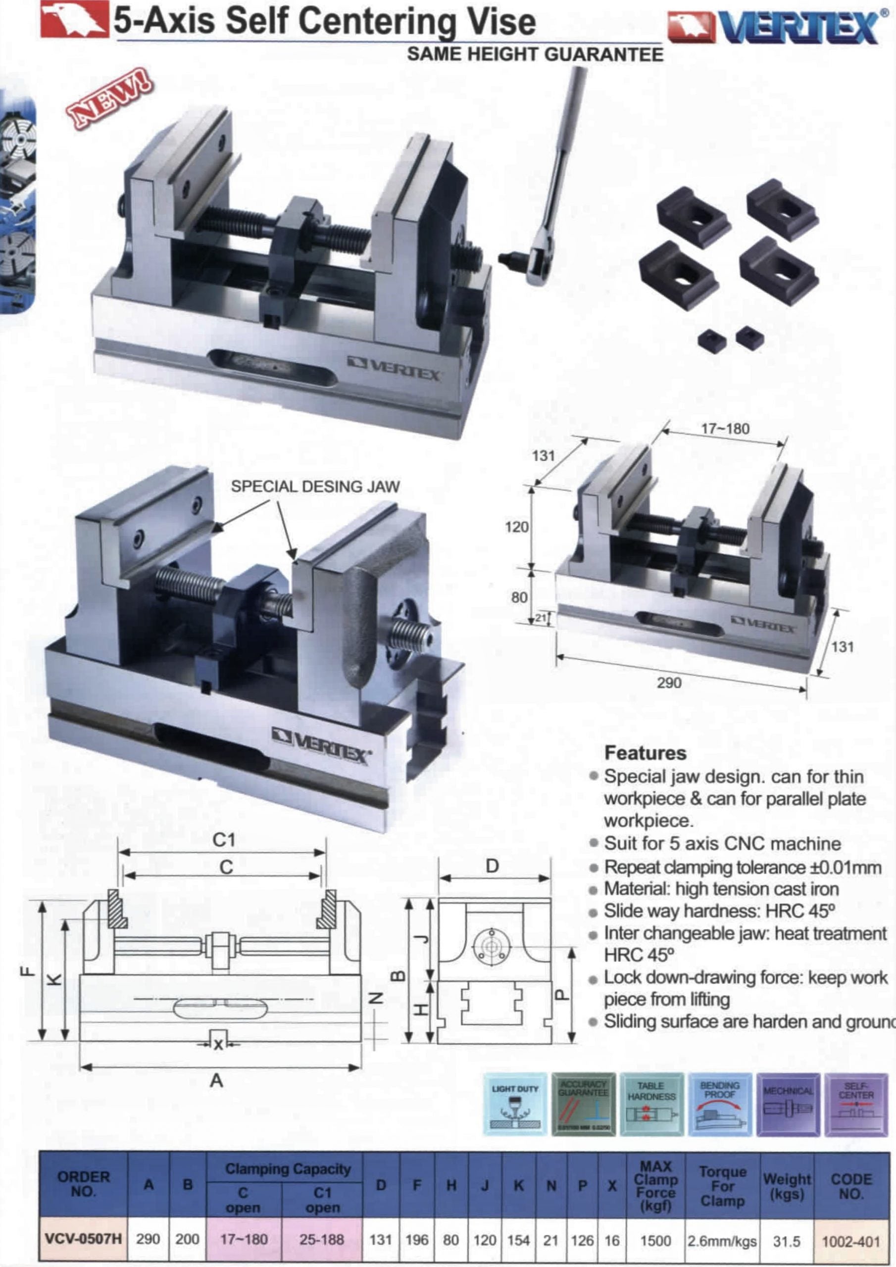 5-Axis Self-Centering Machine Vice VCV-0507H
