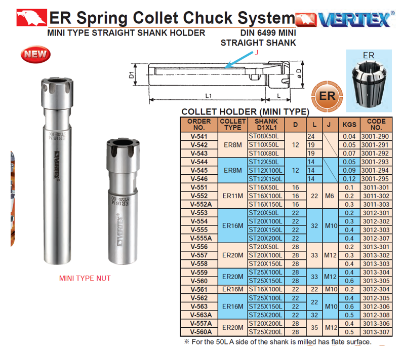 ER Spring Collet Chuck System Vertex V-553 (ST20-ER16M-50L)