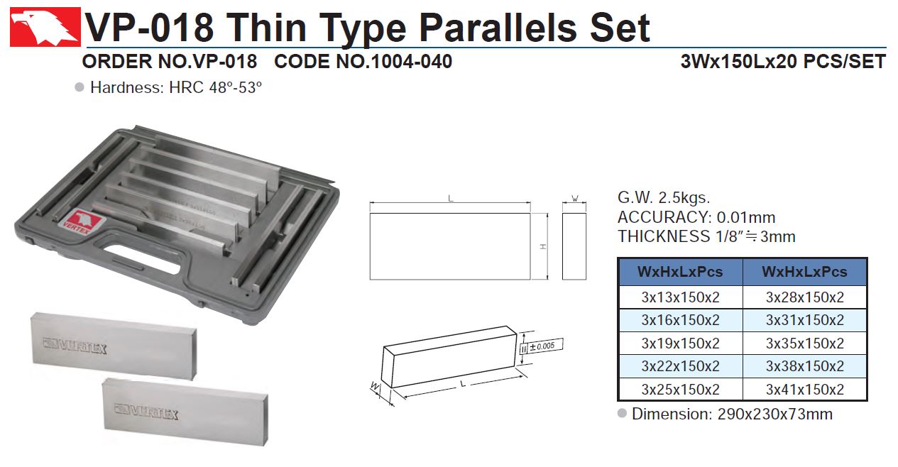 Thin Type Parallels Set Vertex VP-018 150mm 20 pcs.