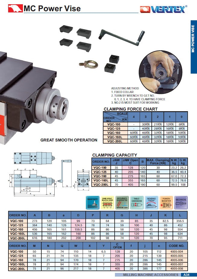 • Exclusive Power Vise Design: Maintains the same height and position for both horizontal and vertical MC, NC, and other machine setups.