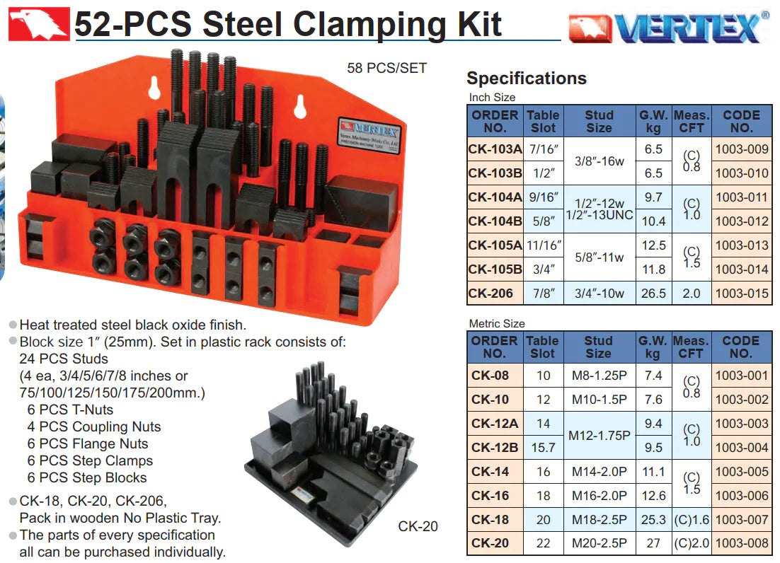 52-PCS Steel Clamping Kit Vertex CK-20 M20