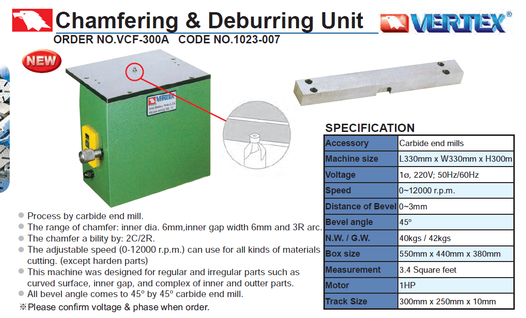 Naprava za posnemanje in raziglevanje robov Vertex VCF-300A
